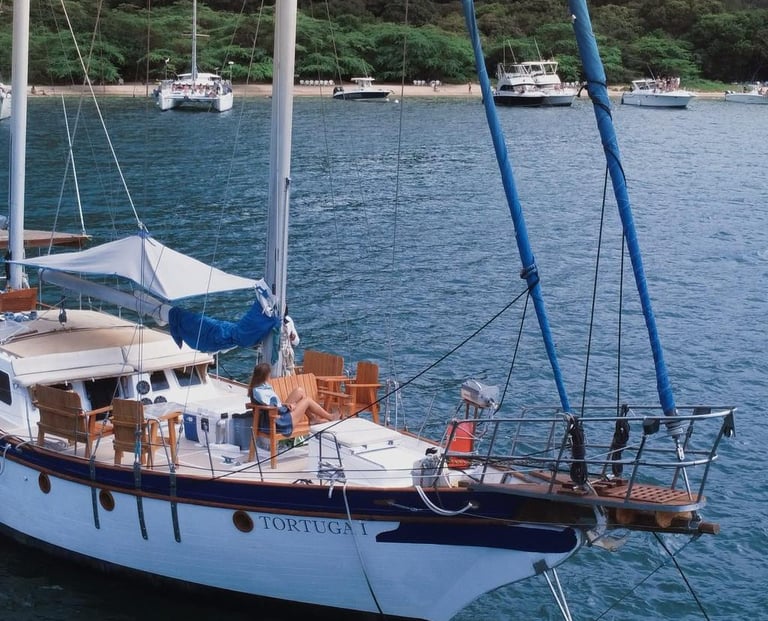 ¡Bienvenidos a bordo del velero Legendario Tortuga 1! Te invitamos a descubrir la magia de navegar en este hermoso velero de 56 pies, modelo 1976, fabricado por la prestigiosa marca alemana Formosa. Con una capacidad para 30 personas, Tortuga 1 es el lugar perfecto para compartir momentos inolvidables con amigos y familiares. Nuestro velero no solo cuenta con un diseño clásico y elegante, sino que también está completamente equipado para garantizar tu comodidad y diversión. Ofrecemos una variedad de deportes náuticos, incluido kayak, para que puedas explorar las aguas que rodean nuestros destinos de una manera activa y emocionante. Legendario Tortuga 1 tiene una rica historia: ha dado la vuelta al mundo, capturando la esencia de la navegación y la aventura. Cada travesía está marcada por paisajes impresionantes y la posibilidad de crear recuerdos que durarán toda la vida. No te pierdas la oportunidad de navegar con nosotros y vivir experiencias únicas. ¡Te esperamos para compartir la belleza del océano y la aventura de navegar a bordo de nuestro velero Legendario Tortuga 1!